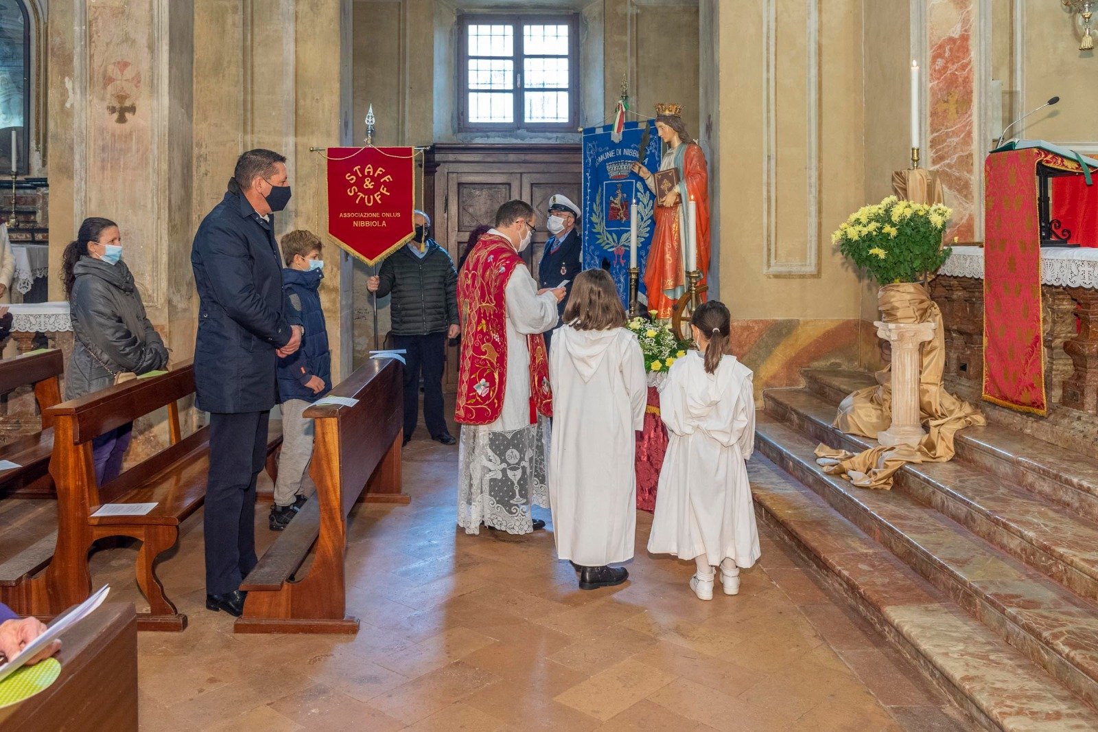 Il sapore della festa si sente anche in tempo di Covid. Nibbiola ha voluto così festeggiare la sua patrona S. Caterina, con la Messa al mattino di domenica 22 novembre e nel pomeriggio, dopo la preghiera dei Vespri in chiesa parrocchiale, la consegna del riconoscimento alla benemerita dell’anno, signora Bruna in pensione, distintasi nel ruolo di cuoca e bidella della locale scuola materna per la cura con cui “ha cresciuto amorevolmente più generazioni” e i premi ai tre laureati nel 2020: Massimiliano, Rebecca e Silvia.